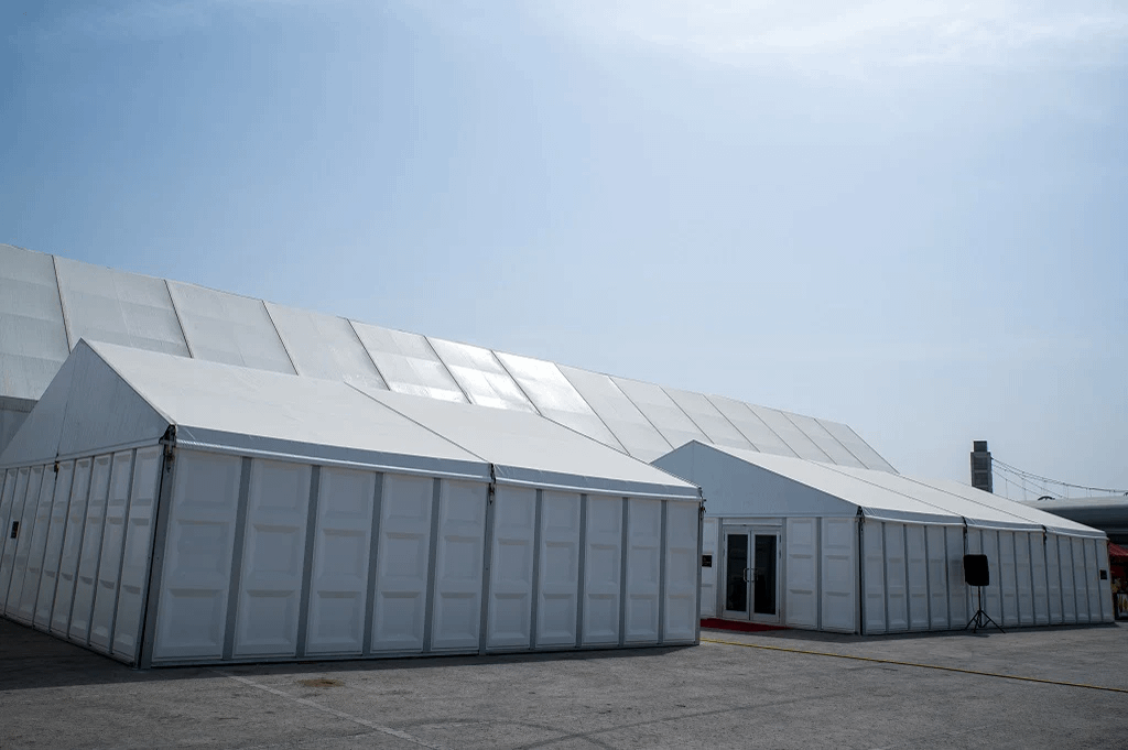 Maximize your storage capacity with our durable and spacious A-Frame Marquee, perfect for temporary or permanent warehousing needs.