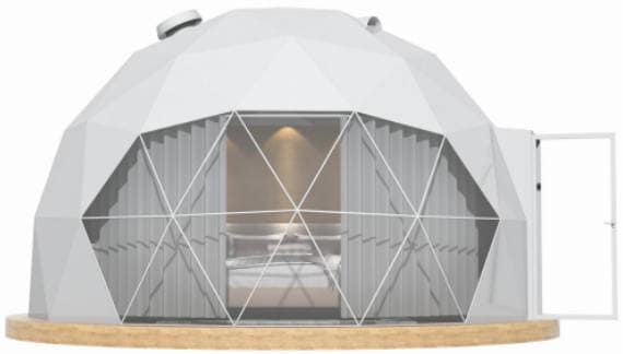 Geodesic domes living spaces allow people to set their daily life in nature. The framework of glamping dome tent is using the Q235 hot dip galvanized steel pipe material, which it is constructed to support the internal and external weight loads. When properly arranged, the geodesic dome glamping tent give a natural and five stars hotel feel. Geodesic domes glamping tent included with 100% waterproof PVC cover part white and part clear bay window. The bay windows at the front of glamping dome tent let light flood into the living area and will make the most of your surroundings. It can put equipped with independent bathrooms, ventilation holes and exhaust fan, air conditioner, coffee tables, wardrobes, and other facilities to provide tourists with an excellent accommodation experience. The glamping dome is suitable for 1-2 peoples or family living, we provide various size’s luxury glamping dome tent of 6m, 7m, 8m to 10m and sufficient accessories and options. And we provide tailored solutions to meet your individual needs and fit your budget.