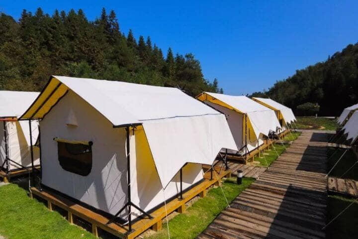 T-SUN Tent brings you a luxurious glamping experience with tents crafted from high-quality steel frames and hot-dipped galvanized connectors, ensuring durability and stability. Certified by ISO 9001:2008/SGS, each tent meets the highest standards of quality and safety.
