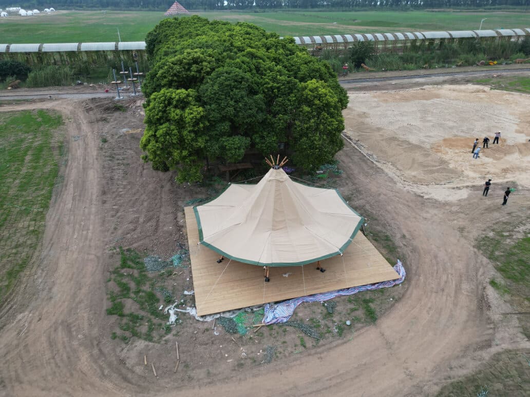 Flexibility is key with the T-sun Tipi Tent, which is available in customizable sizes ranging from 4m to 13m (13.1 feet to 42.7 feet) in diameter. Additional features, such as integrated construction, solid wood doors, and transparent enclosures, offer enhanced functionality and aesthetic appeal. These customizations provide users with the opportunity to tailor the tent to their specific needs, ensuring an ideal setup for any occasion.